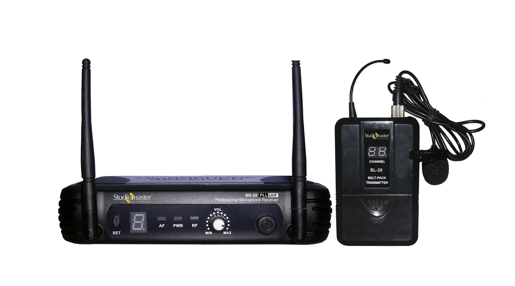 The Studiomaster Professional BR 28/BL 28 is a Lapel Wireless Microphone System with 8 Selectable UHF Channels. The selectable 8 UHF channels ensure flawless and non interfering performance, along with an exceptionally clear microphone make the BR 28/BL28 a great value proposition.